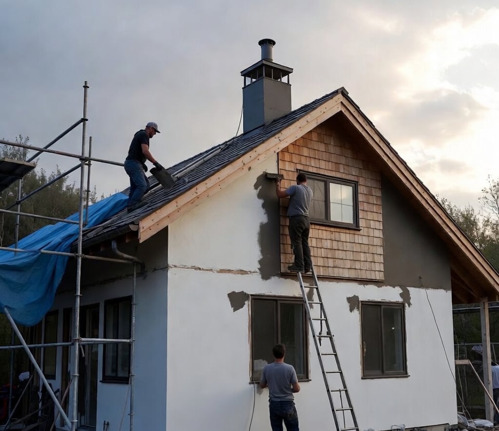 ფასადის მოწყობა: გალესვა, შეღებვა, თბოიზოლაცია.